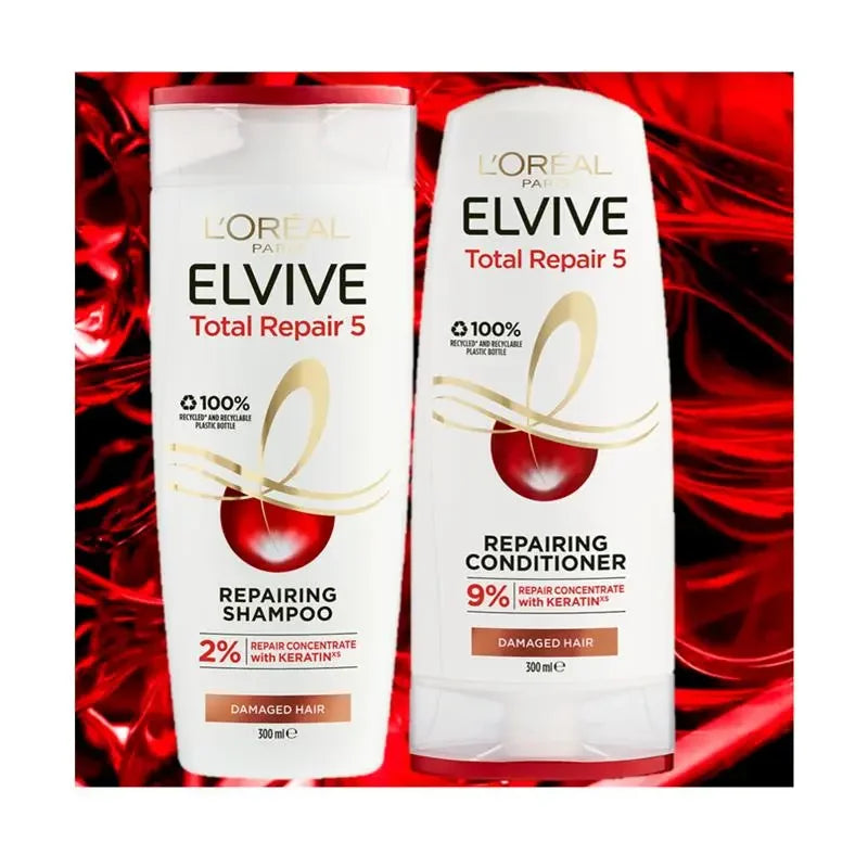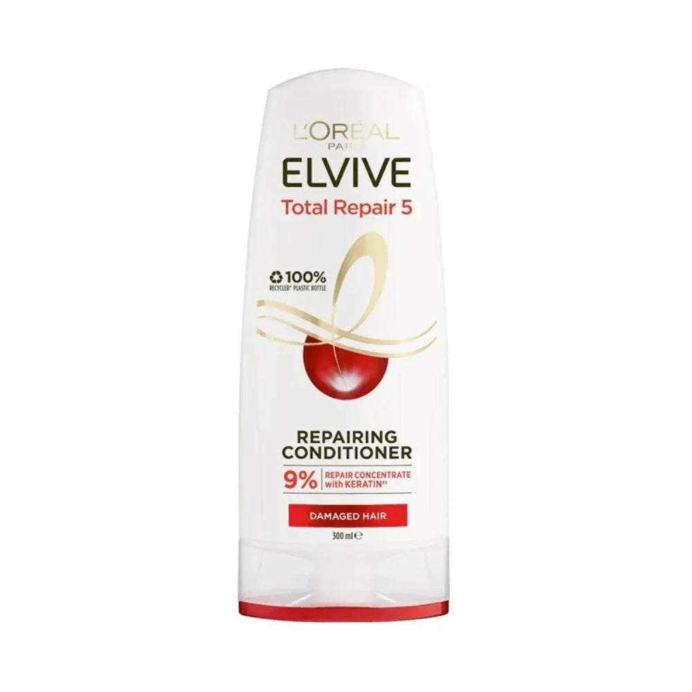 L'Oréal Paris Elvive Total Repair 5 Conditioner is a nourishing formula designed to address the five visible signs of damaged hair – dryness, weakness, flatness, coarseness, and dullness.