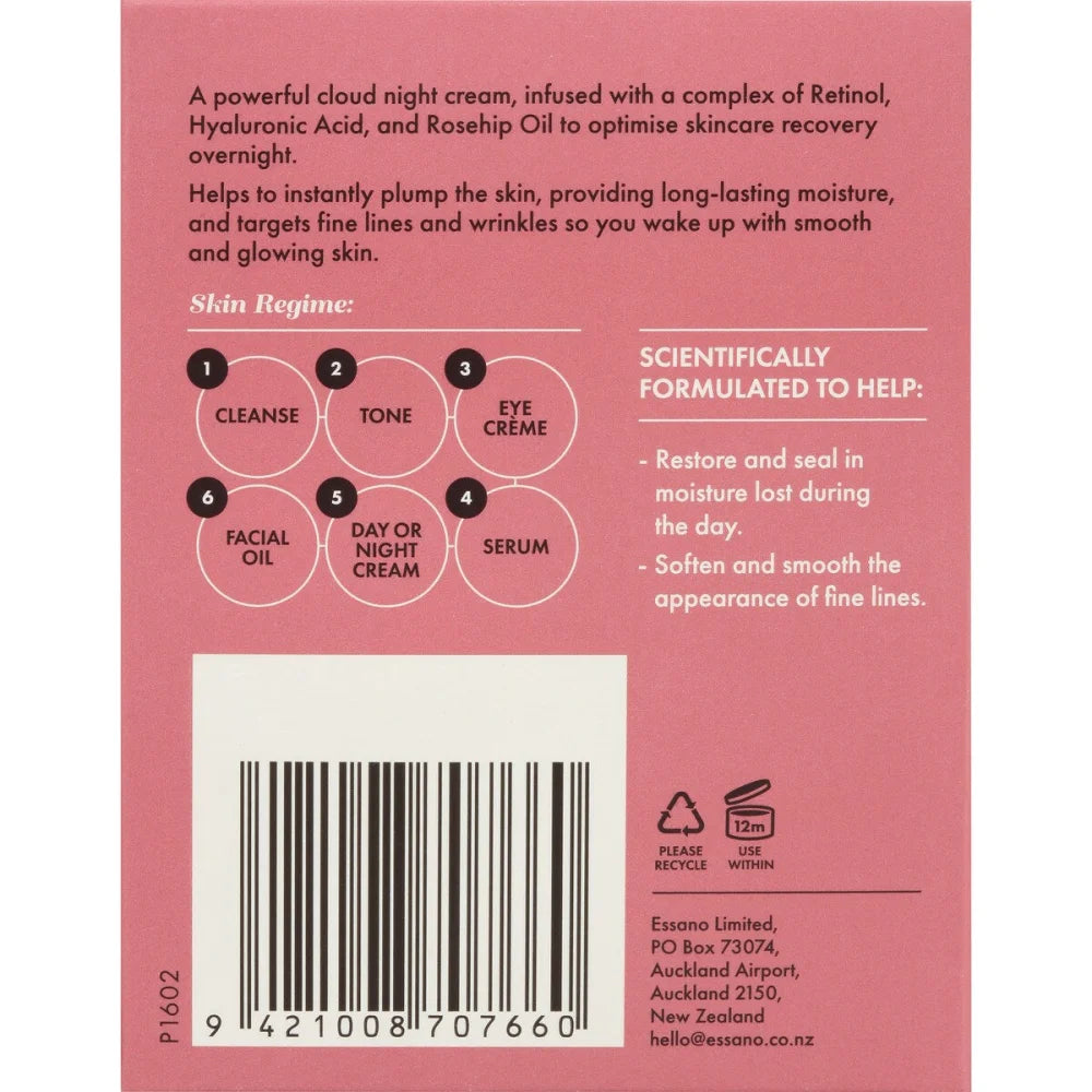 A soft, cloud like night cream infused with a Retinol Complex, Hyaluronic Acid and Rosehip Oil to optimise overnight skin recovery.