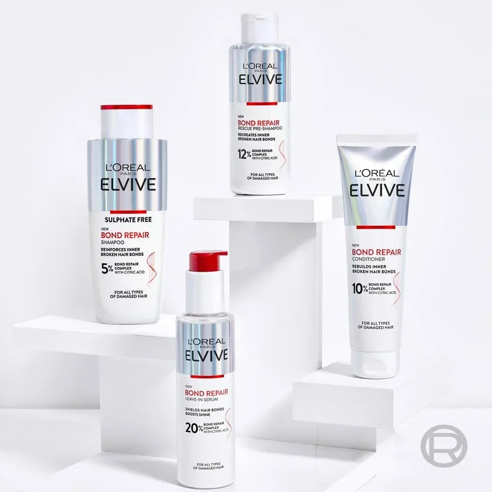 2. Follow with the Elvive Bond Repair Shampoo and Elvive Bond Repair Conditioner to strengthen and repair damaged hair.
