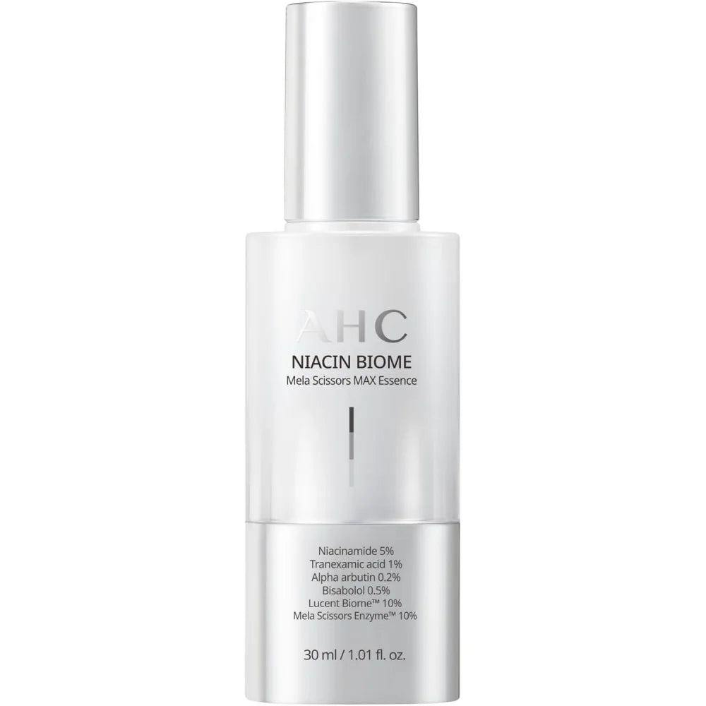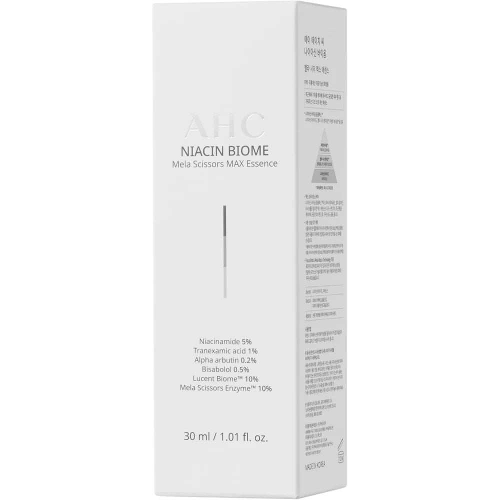 AHC Niacin Biome Mela Scissors Max Essence is a powerful brightening treatment that helps improve skin clarity and radiance.
