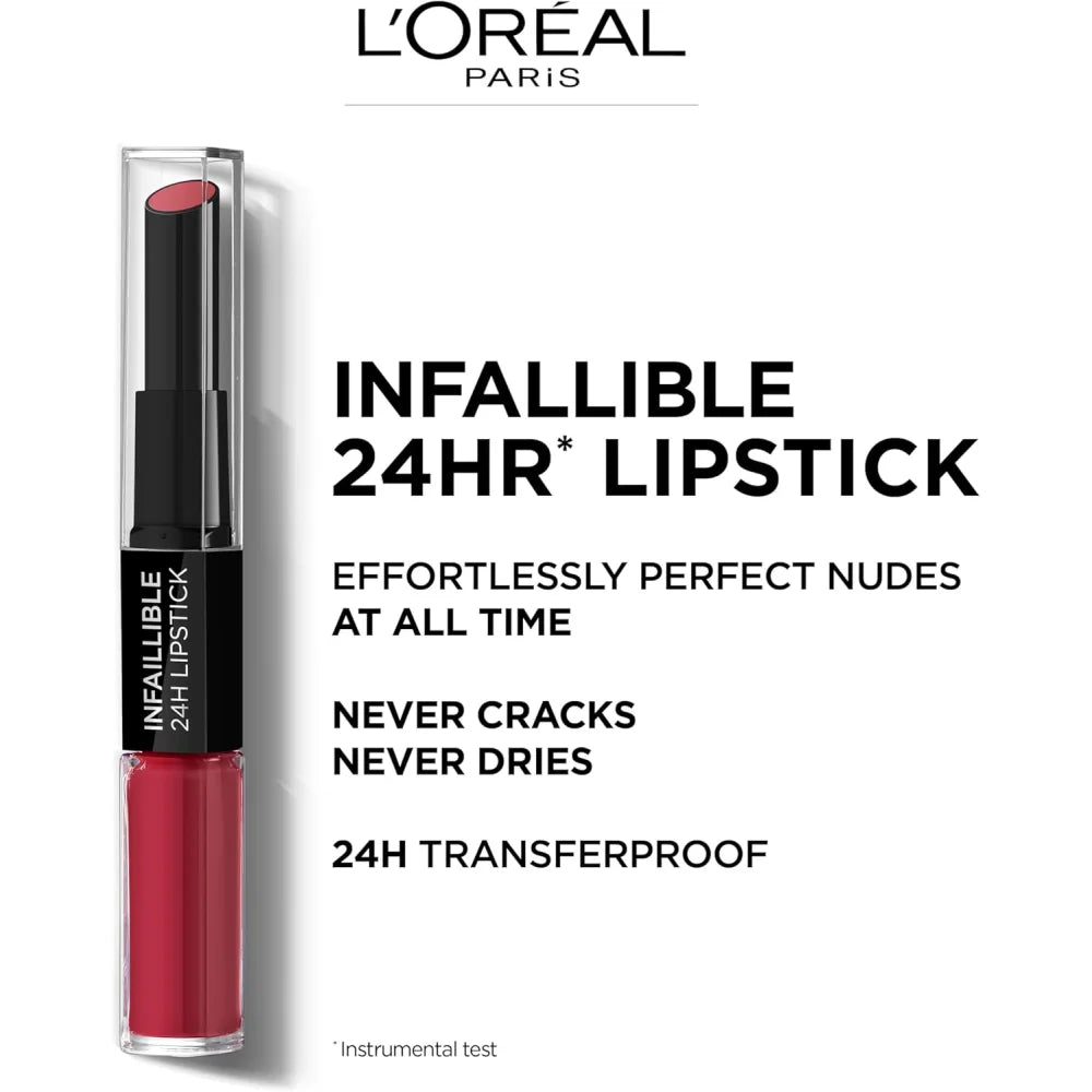 L'Oréal Paris Infallible 2-Step Lipstick delivers up to 24 hours of comfortable wear with rich pigment and a moisturising balm for a flawless finish.