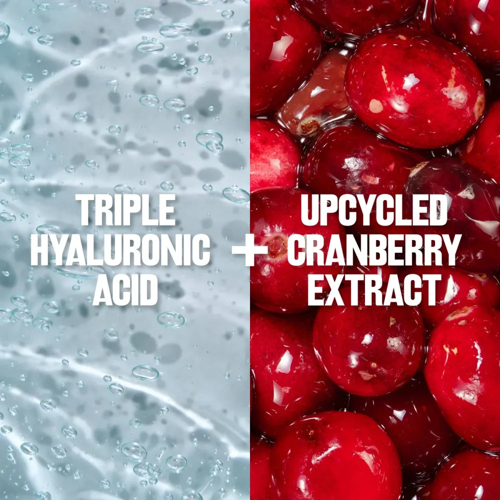 • Triple Hyaluronic Acid for comfort plus upcycled cranberry extract