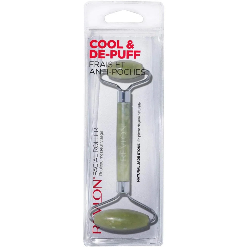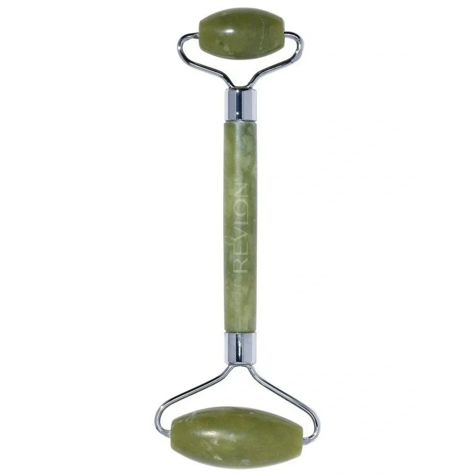 A dual ended jade stone facial roller that instantly cools, depuffs and refreshes the look of skin for a healthy glow.
