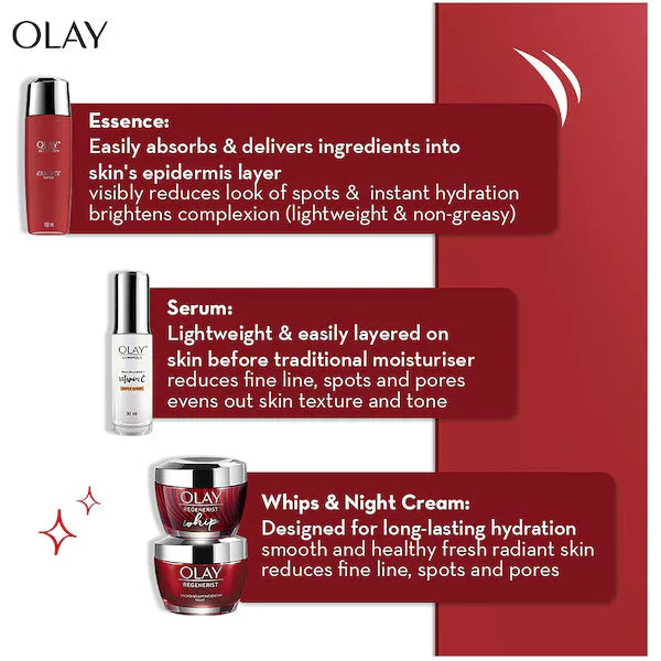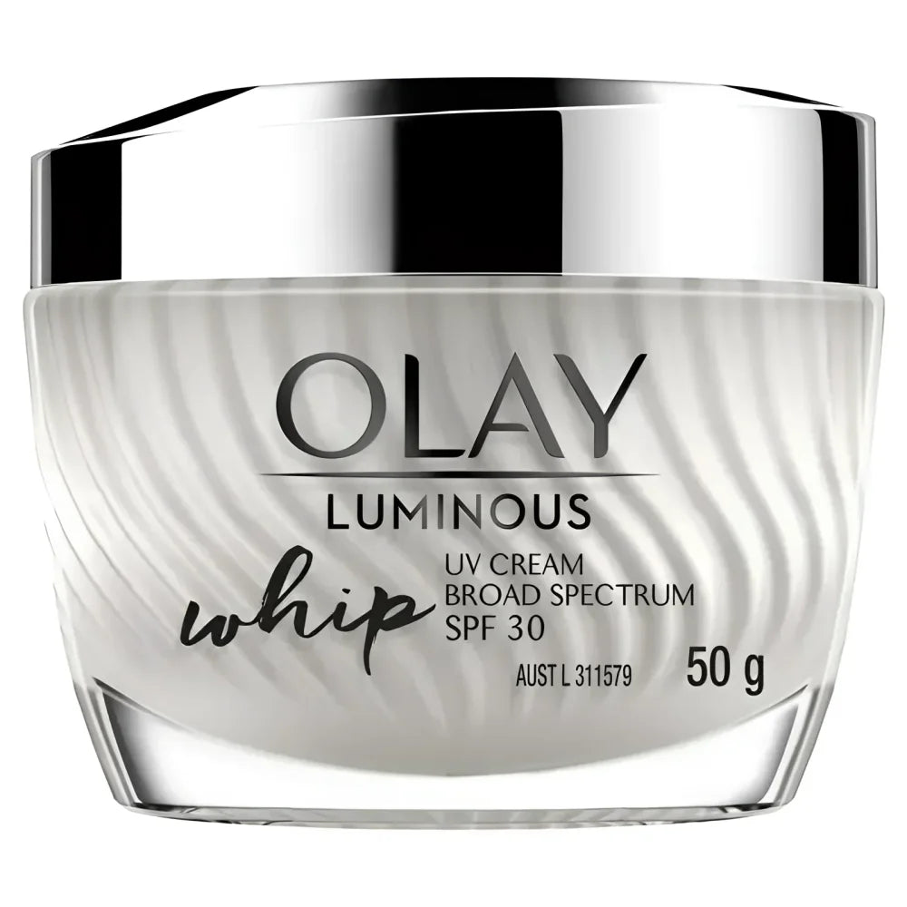 Olay Luminous Whip SPF 30 delivers advanced hydration, skin-brightening benefits, and broad-spectrum UVA/UVB protection in one effortless step. Its unique whipped texture melts instantly into the skin with zero greasy residue, leaving a smooth, matte finish perfect for layering under makeup.
