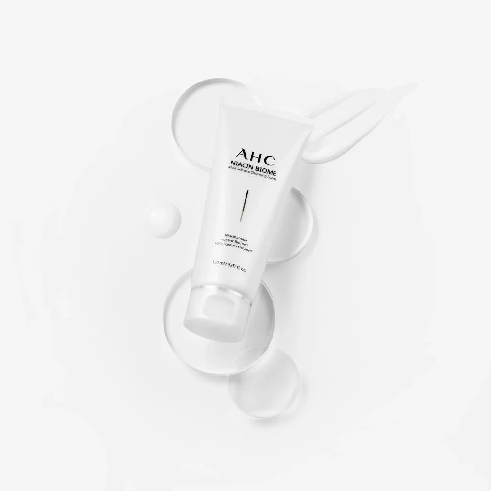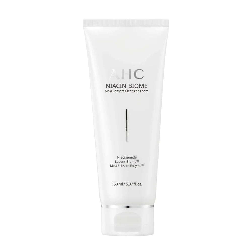 AHC Niacin Biome Mela Scissors Cleansing Foam is a brightening and purifying daily cleanser designed to target dullness, uneven skin tone, and excess sebum without compromising your skin’s barrier.
