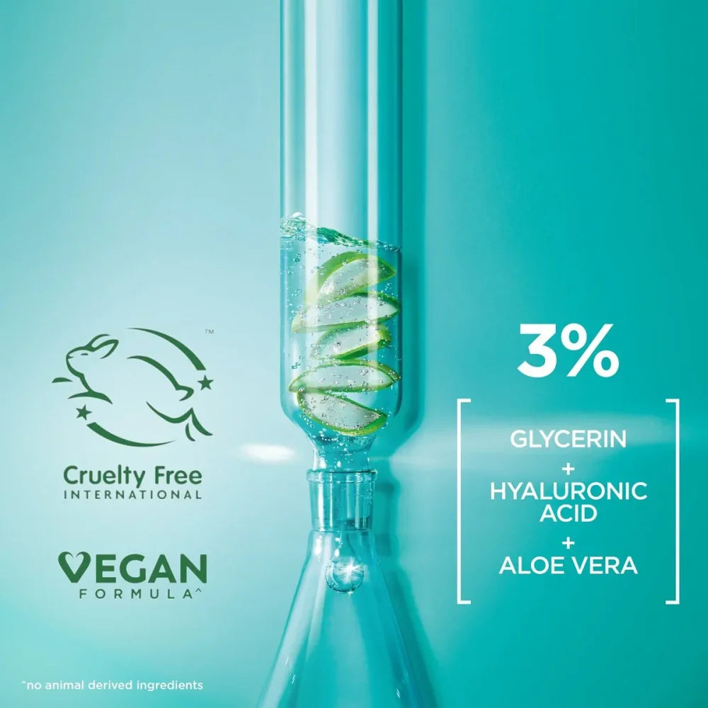 3% Glycerin + Hyaluronic Acid + Aloe Vera for deep hydration