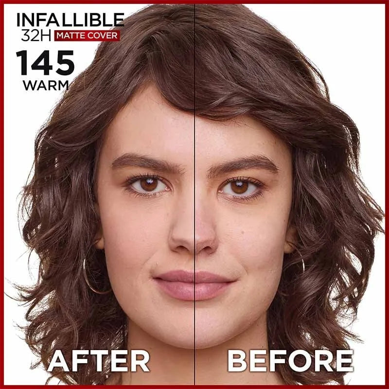 L'Oréal Paris Infallible 32H Matte Cover Foundation With 4% Niacinamide - 145 Warm Undertone (30ml)